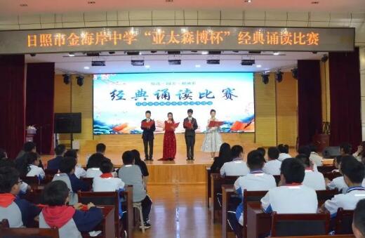 為豐富校園文化生活,引導學生深入了解中華民族的歷史和文化,感悟經(jīng)典魅力,增強文化自信和民族自豪感,4月29日下午,在亞太森博(山東)漿紙有限公司的支持下,日照市金海岸中學舉辦了“悅讀·閱美·越成長”經(jīng)典誦讀比賽。學校領(lǐng)導班子、公司代表、教師代表一同出席活動并擔任評委。