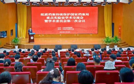 5月10日,山東省檔案館、山東中醫藥大學聯合舉辦的紙質檔案持續保護國家檔案局重點實驗室學術交流會暨學術委員會第一次會議在濟南舉行。山東省檔案館館長李世華、山東中醫藥大學黨委書記張立祥、山東省教育廳二級巡視員侯典明、太陽紙業副總經理劉澤華、實驗室學術委員會委員參加會議。