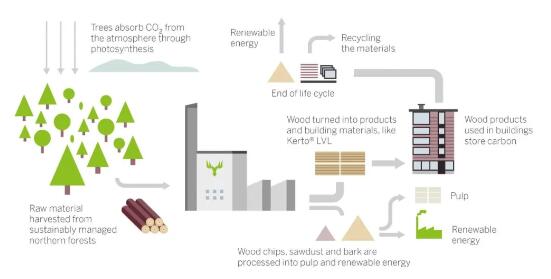 可持續(xù)發(fā)展需要全面提高資源效率 Sustainer的數(shù)字設(shè)計(jì)可以通過支持整個(gè)價(jià)值鏈中的可持續(xù)性和循環(huán)性(從采購到報(bào)廢解決方案)的建筑材料充分發(fā)揮其潛力。 說到KertoLVL,資源效率已始于森林,芬林集團(tuán)利用樹木的每一部分生產(chǎn)附加值最高的產(chǎn)品。在生產(chǎn)過程中,芬林梅沙木業(yè)盡可能高效地使用原材料、能源和水。例如,96%的生產(chǎn)副產(chǎn)品被用作新產(chǎn)品和可再生能源的原材料。