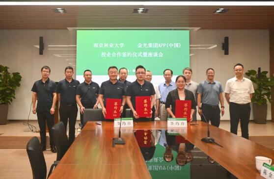 近日,金光集團APP中國與南京林業大學合作座談會暨簽約儀式順利舉行。金光集團APP中國旗下金海漿紙業有限公司總經理孟祥巖、林務事業部總經理范志剛等與南京林業大學校長勇強、南京林業大學原副校長施季森教授等專家、領導齊聚一堂,共話合作發展新篇章。