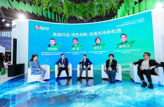 下半場圓桌對話,SGS通標標準技術(shù)服務有限公司產(chǎn)品認證經(jīng)理顧東蘭、TÜV南德企業(yè)社會責任及可持續(xù)發(fā)展業(yè)務負責人林海、金光集團APP(中國)工紙事業(yè)部技術(shù)質(zhì)量管理&技術(shù)銷售負責人仇如全、金光集團APP全球外銷黑紙出口銷售負責人康炳衛(wèi)圍繞“綠色技術(shù)與市場拓展”議題進行探討。