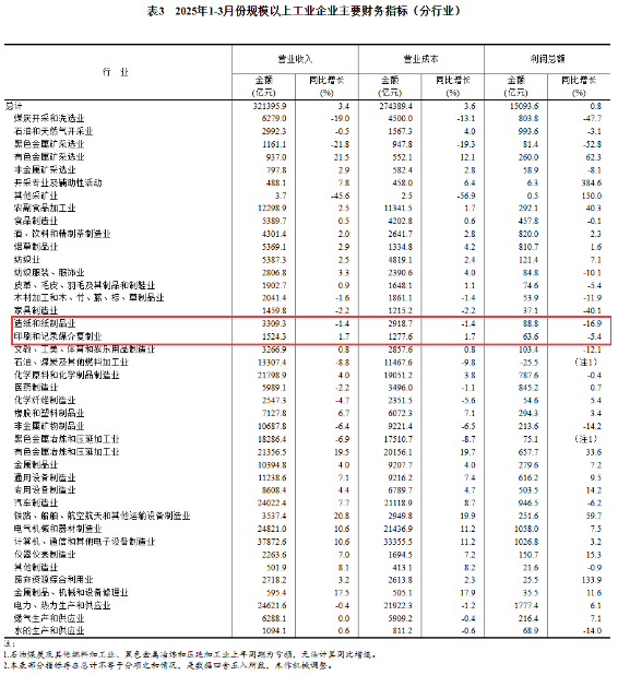 值得關(guān)注的是,2025年1—3月份造紙和紙制品業(yè)實(shí)現(xiàn)營業(yè)收入3309.3億元,同比下降1.4%;實(shí)現(xiàn)利潤總額88.8億元,同比下降16.9%。