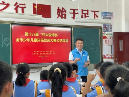 課堂上,張守波宣讀了《關于組織開展第十八屆“亞太森博杯”全市少年兒童環保繪畫大賽的通知》。公司為孩子們貼心地準備了彩筆、橡皮、繪紙等文具。當公司志愿者問孩子們想不想參加繪畫大賽、想不想拿大獎的時候,孩子們早已按捺不住興奮的心情,揮舞著小手熱情應答。