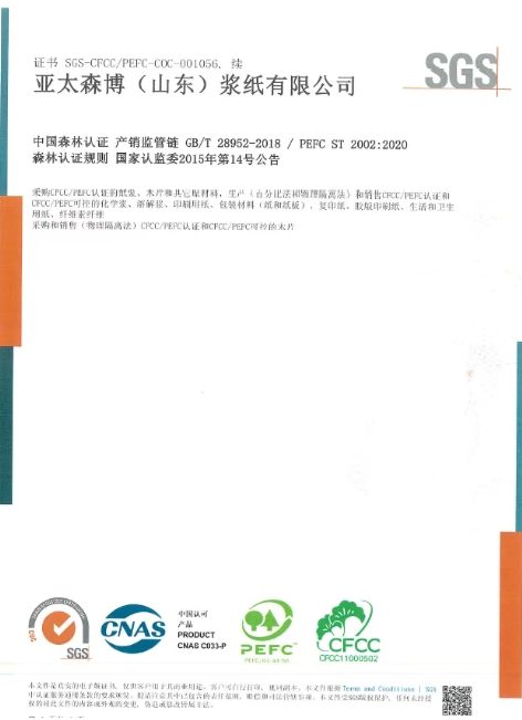 11月19日,亞太森博(山東)漿紙有限公司順利通過了CFCC(中國森林認證)/PEFC(森林認證體系認可計劃)產(chǎn)銷監(jiān)管鏈(COC)審核,這證明我公司在可持續(xù)林業(yè)產(chǎn)品貿(mào)易和負責任采購方面的管理體系持續(xù)有效運行,并為公司的市場競爭力與綠色品牌形象提供了有力保障。此次審核由通標標準技術(shù)服務(wù)有限公司(SGS)負責。