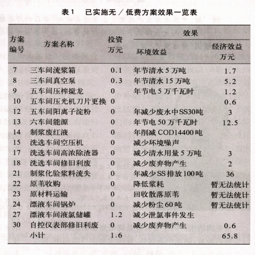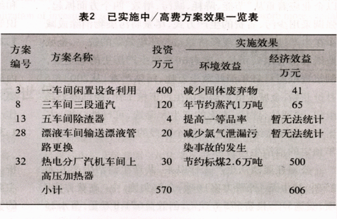公司清潔生產小組與省清潔生產專家對提出的方案共同進行了多次討論,確定2萬元以下為無/低費方案,2萬元以上為中/高費方案。經分類、匯總,形成共計30個方案,其余部分為技術改造或清潔現場衛生等方案。其中無/低費方案16項,中/高費方案9項,5項方案因其它原因暫時擱置。