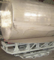 高效黑液提取機主體是耐壓鋼罐,罐內壁支撐不銹鋼燒結網,網與內壁之間是濾液通道。罐軸心配中空囊,囊壁縱向折合,展開時囊體積充滿罐體,囊壁厚度不變。罐內充滿粗漿后,向囊內充高壓流體,囊體積增大,壓榨粗漿,黑液穿過濾網排到罐外,漿餅留在網表面。先排凈罐內黑液,再放空囊內流體,然后反沖出漿。由編程控制器PLC自動控制。