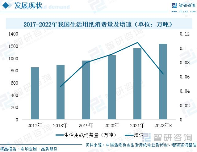 生活用紙是消費量巨大的日用消費品,隨著我國經濟發展水平和人民生活水平日益提高,全國各地區對生活用紙的消費量都呈穩定增長態勢。數據顯示:2021年我國生活用紙消費量達到1162萬噸,同比增長10.77%,國內生活用紙市場規模約1406.6億元,是全球最大的生活用紙消費國。隨著居民生活水平不斷提升以及消費者健康衛生意識不斷增強,2022年生活用紙消費量將延續增長態勢,達到1236萬噸,這將進一步拉動造紙設備需求上漲。同時,隨著人們對生活用紙質量要求越來越高,使得造紙行業對造紙設備技術要求逐步提升,也將進一步推動造紙設備升級轉型,行業發展潛力較大。
