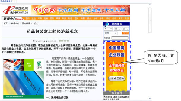 中國紙網品牌欄目右側醒目位置,大面積的發布空間,產生很強宣傳效果。適合于品牌、形象宣傳、市場推廣及行業展會等大型活動。